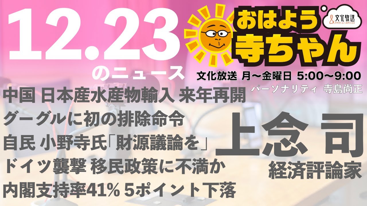 上念司 経済評論家【公式】おはよう寺ちゃん 12月23日(月) #Google #日本産水産物 #年収の壁 #地価税 #住宅価格 #PFAS検査