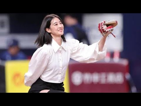 始球式の捕手役で話題となった長身美女 打ってもすごかった 左打席で“ホームラン”直撃