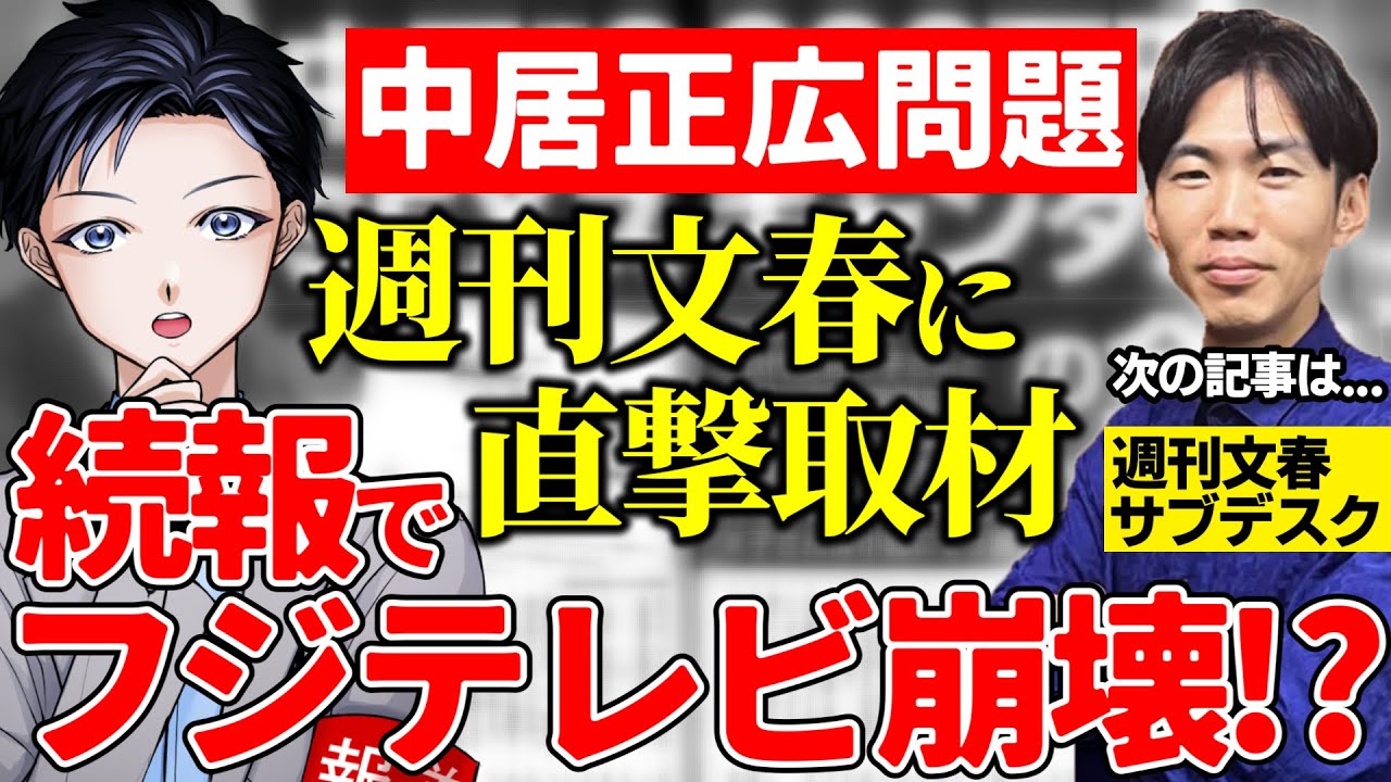 【中居正広】続報でフジテレビ崩壊!?週刊文春が直撃取材で明かした衝撃の内容・示談金9000万円女性トラブルの今後は?【記者VTuber】