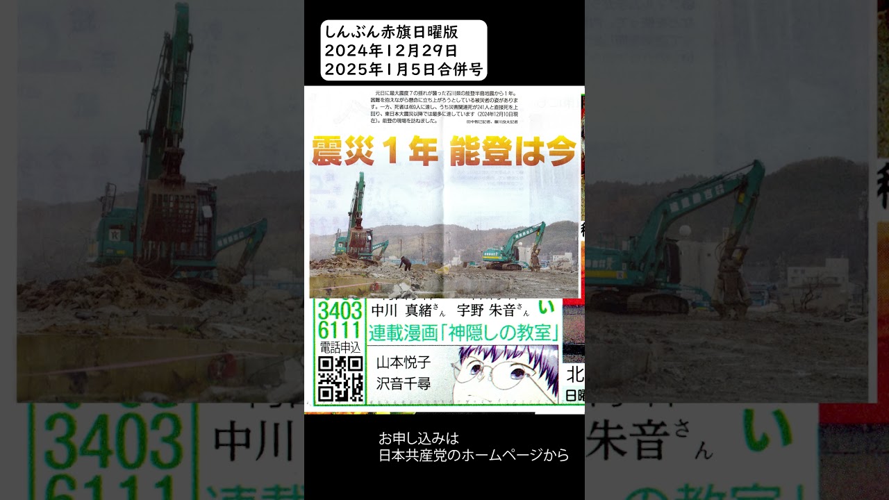 Share Facebook Twitter Pinterest LinkedIn 赤旗日曜版 2024年12月29日・2025年1月5日合併号 #日曜版 #日本共産党 #赤旗 #日曜版 #被団協 #倉科カナ #香取慎吾 #大竹しのぶ #坂東玉三郎 #北口榛花 #仲代達矢 赤旗日曜版最新号の紹介です。お申し込みは共産党ホームページまたはお近くの党事務所へ celebrity倉科カナ