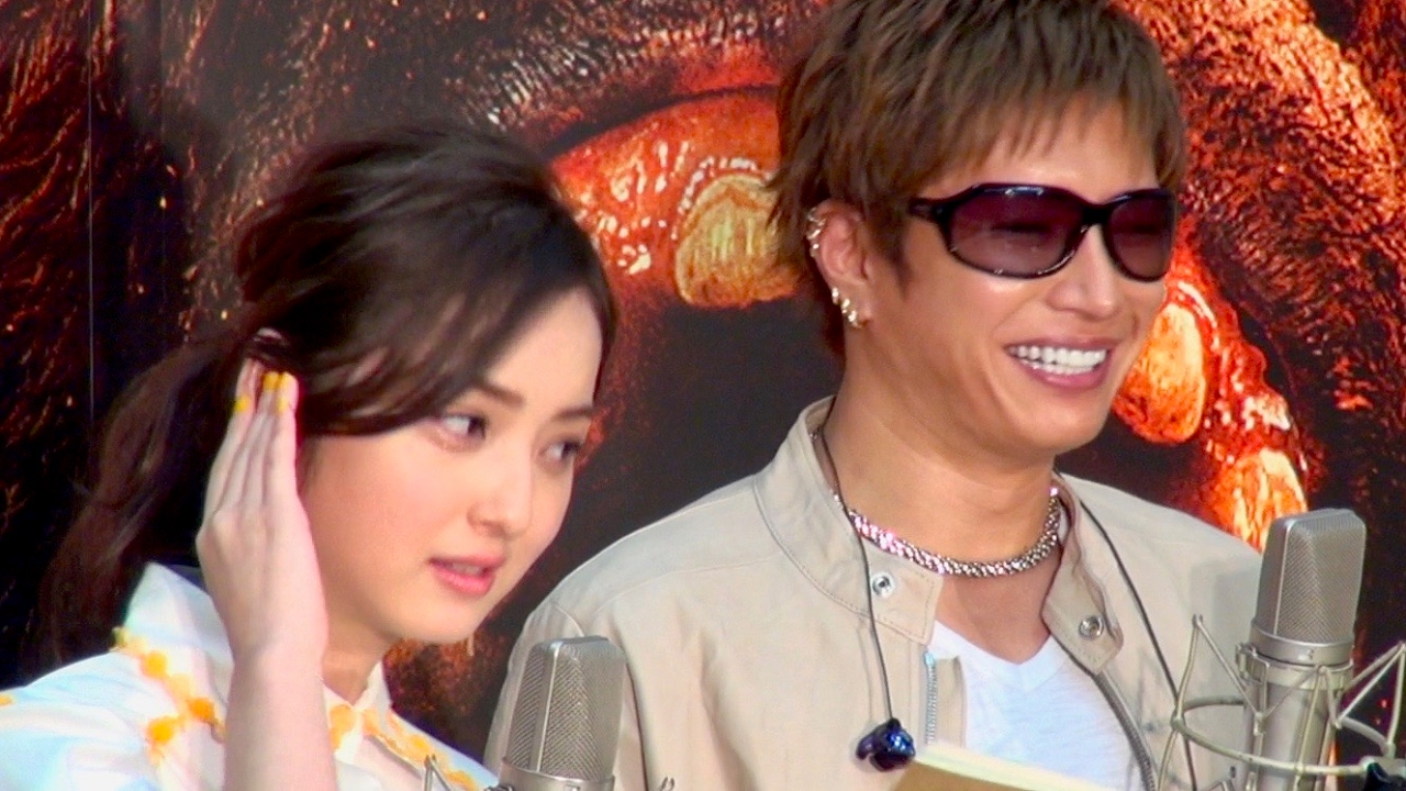 映画『キングコング 髑髏島の巨神』公開アフレコ取材イベントが2017年2月16日に行われ、GACKT、佐々木希が収録風景を披露した。