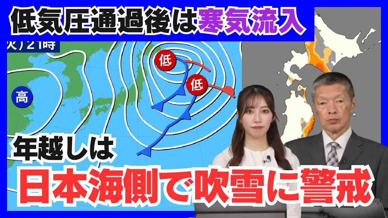 【年越し天気】低気圧通過後は寒気流入 日本海側は吹雪に警戒