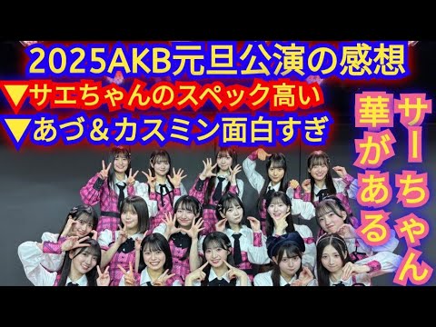 ▶2025年AKB48正月の元旦公演の感想▶さえちゃんのスペックが高い▶アズとカスミン面白い▶さーちゃんオーラある