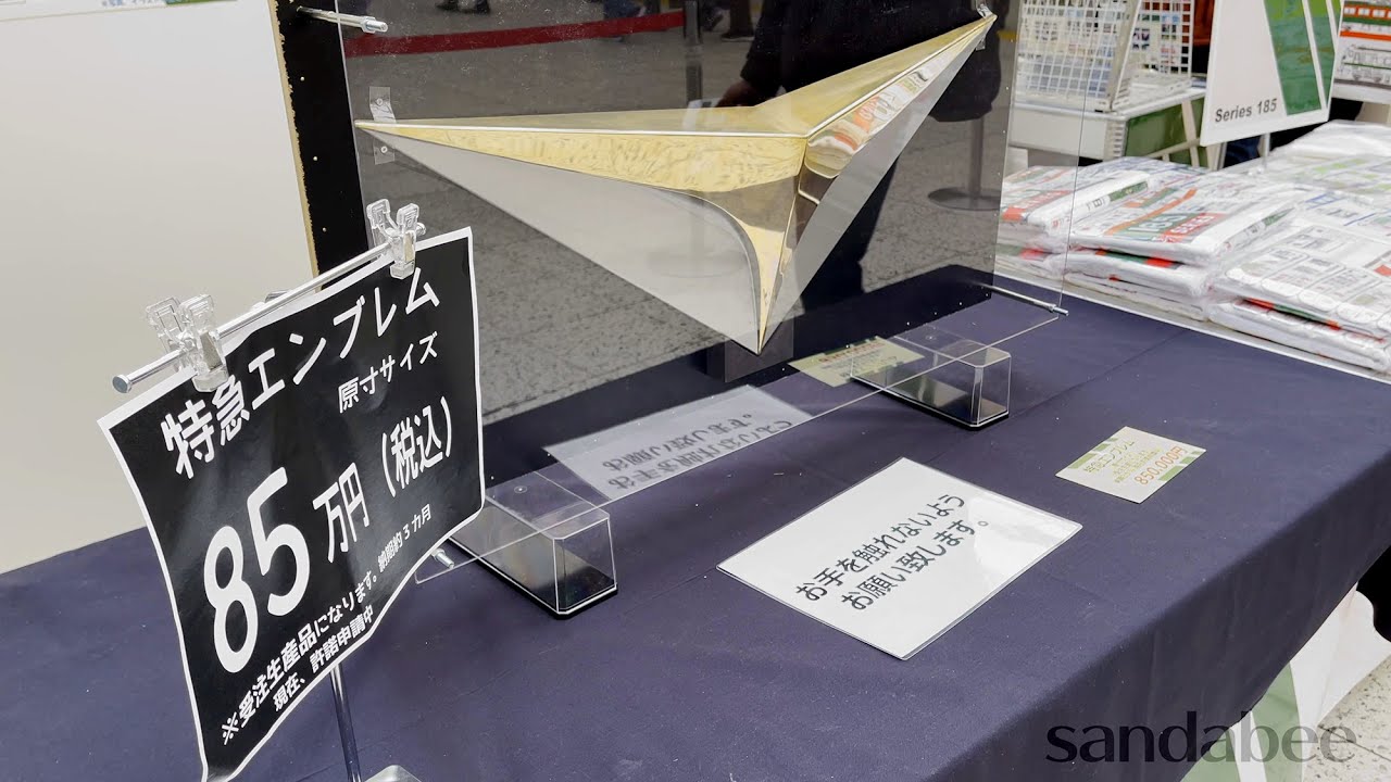 指定工場にて真鍮叩き出しで制作されメモリアル185グッズキャラバンで85万円!で販売されている絶滅寸前国鉄特急エンブレム。1958年151系特急形電車に装備されて以来特急形列車で広く採用された国鉄特急エンブレムだがJR東日本で装備する列車は185系のみ。