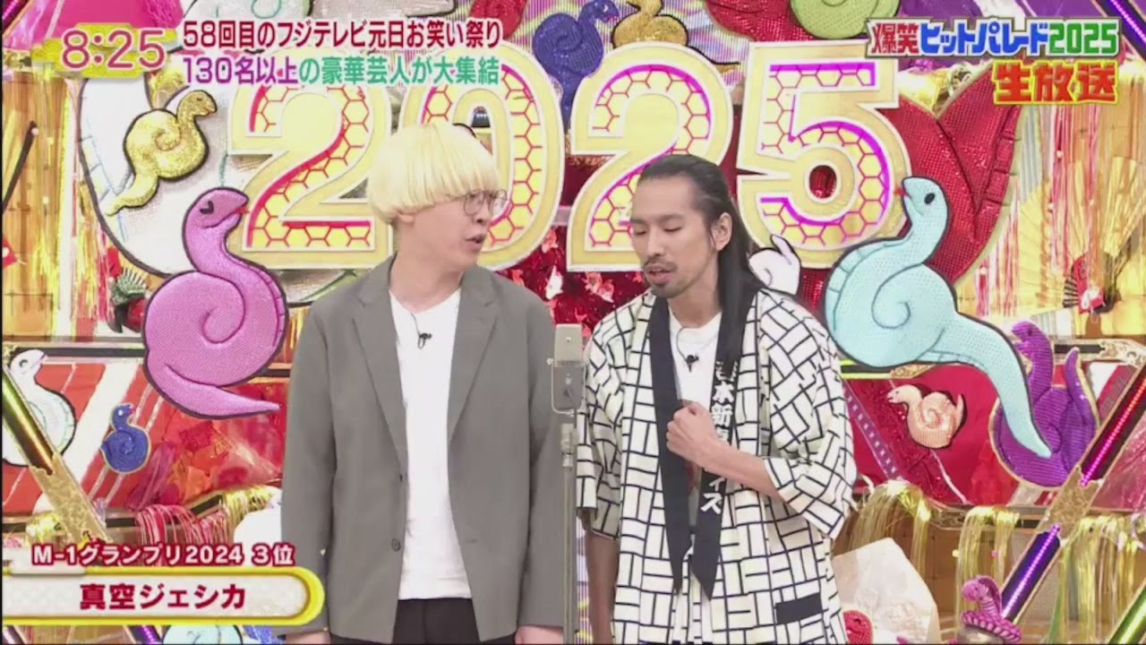 Share Facebook Twitter Pinterest LinkedIn 真空ジェシカ「M-1グランプリ2024 3位」爆笑ヒットパレード2025 1月1日 真空ジェシカ「M-1グランプリ2024 3位」爆笑ヒットパレード2025 爆笑ヒットパレード2025 58回目のフジテレビ元日お笑い祭り 130名以上の豪華芸人が大集結 celebrityダレノガレ明美爆笑ヒットパレード爆笑ヒットパレード2025