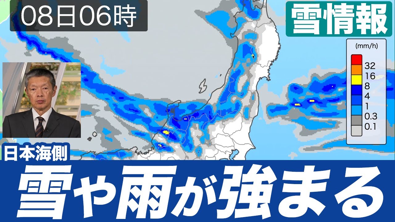 【警戒】日本海側は雪や雨が強まる/明日8日(水)