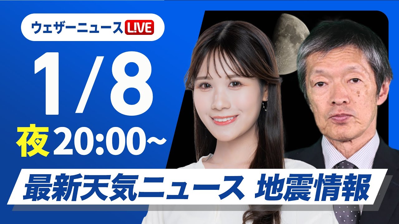 【ライブ】最新天気ニュース・地震情報2025年1月8日(水)/週後半にかけて日本海側で大雪警戒 西日本は平地でも積雪のおそれ〈ウェザーニュースLiVEムーン・戸北美月/飯島栄一〉