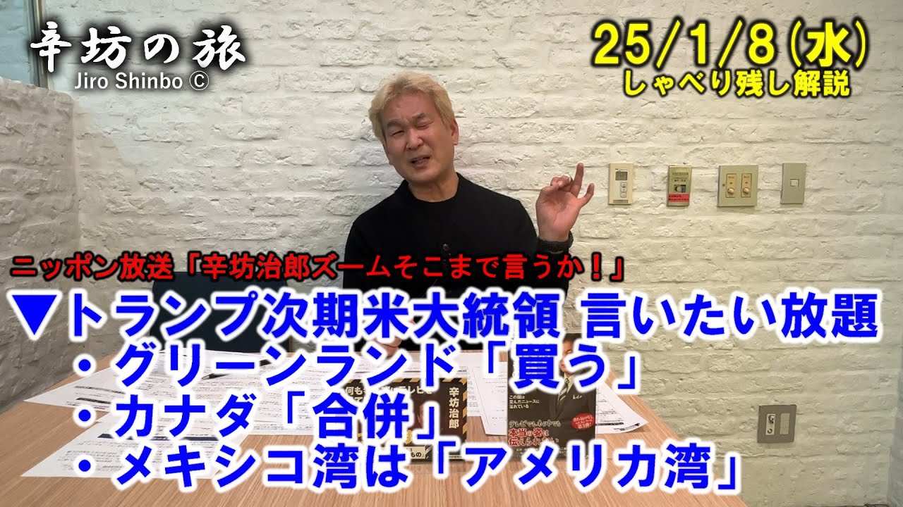 トランプ次期米大統領 言いたい放題▼グリーンランド「買う」▼カナダ「合併」▼メキシコ湾は「アメリカ湾」 25/1/8(水) ニッポン放送「辛坊治郎ズームそこまで言うか!」しゃべり残し
