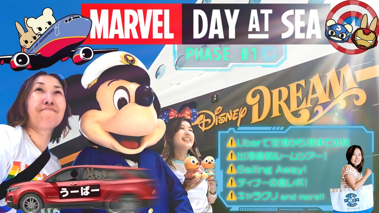 ディズニー マーベルクルーズ1日目!空港から港へ、ルームツアー、パーティー、豪華ディナーほか【Marvel Cruiseドリーム号 】