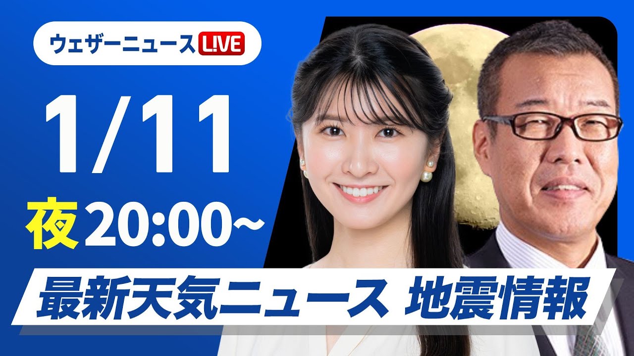 【ライブ】最新天気ニュース・地震情報2025年1月11日(土)17:00〜12日(日)5:00/三連休初日 日本海側は雨雪に注意〈ウェザーニュースLiVEムーン/駒木結衣・森田清輝〉
