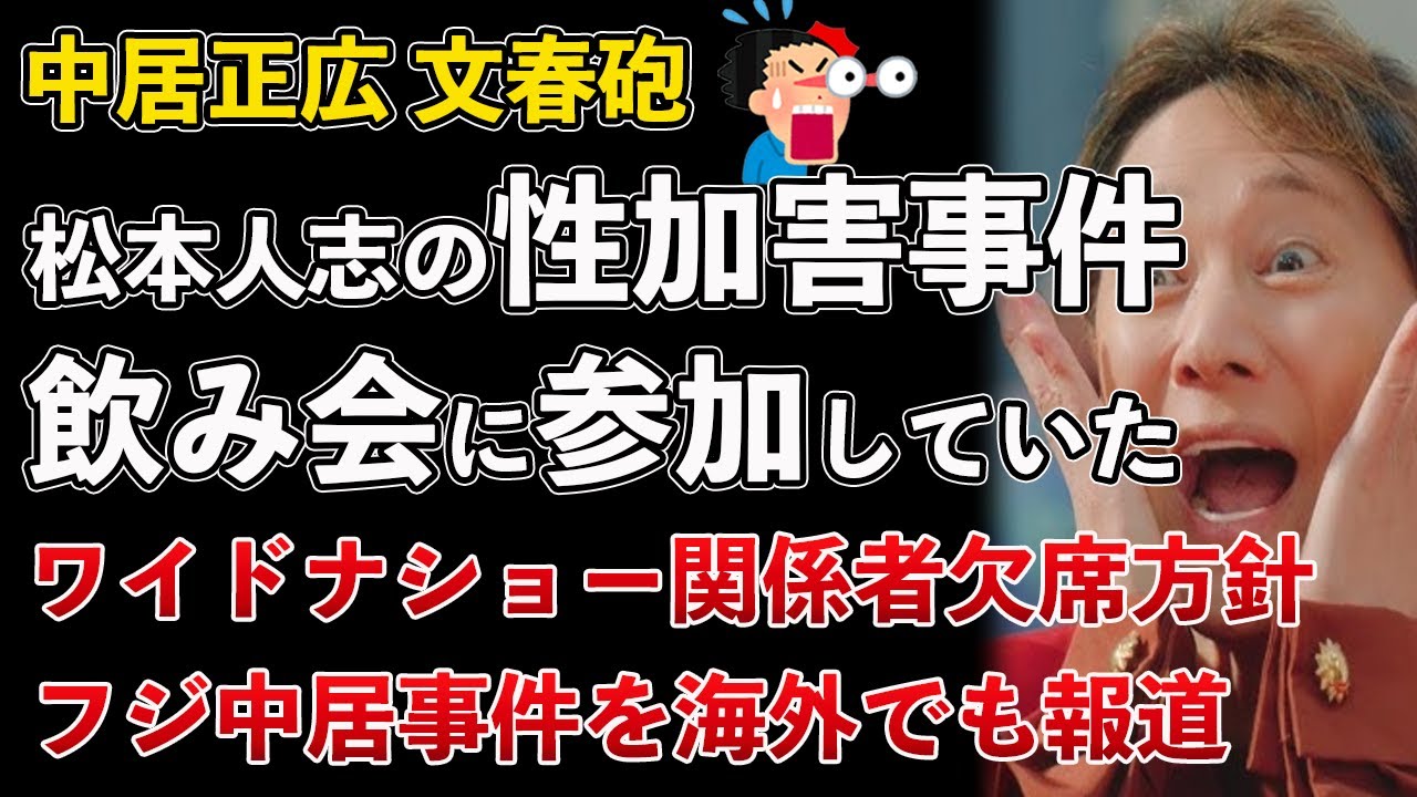 中居正広、松本人志の性加害事件の飲み会に参加!訴え取り下げは中居のためか!ワイドナショー、登場人物たちが欠席【Masaニュース雑談】