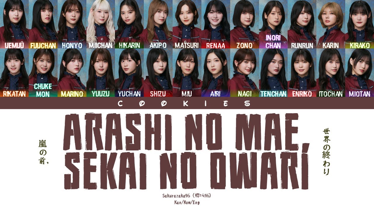 Sakurazaka46 (櫻坂46) – Arashi no Mae, Sekai no Owari (嵐の前、世界の終わり) (Kan/Rom/Eng Color Coded Lyrics)