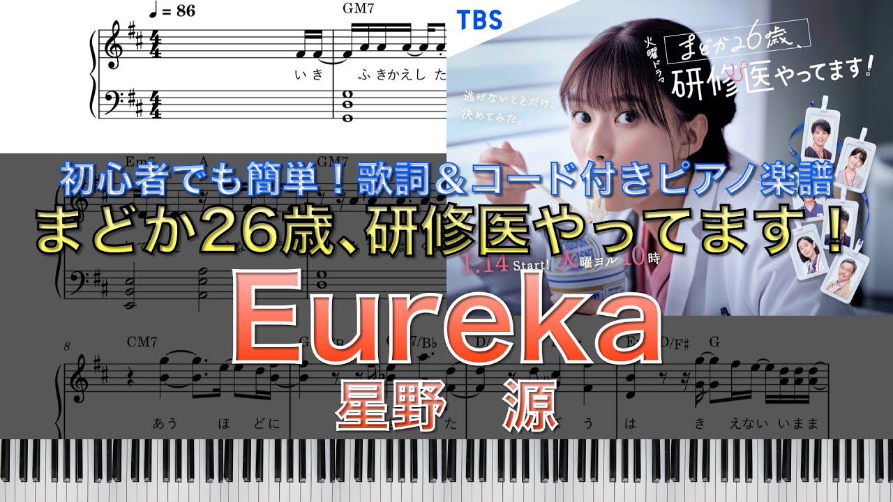 #星野源 新曲「 #Eureka 」、火曜ドラマ『 #まどか26歳、研修医やってます! 』主題歌を、初心者でも簡単に弾けるようにコード付きで #ピアノ #楽譜 を書きました。