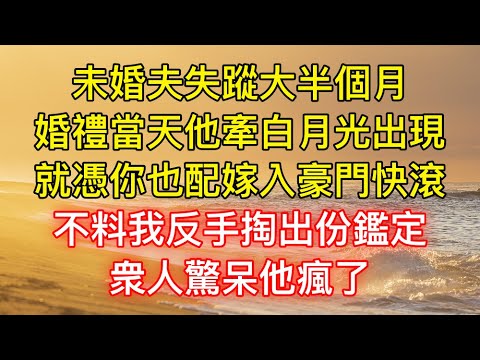 未婚夫失蹤大半個月,婚禮當天他牽白月光出現:就憑你也配嫁入豪門快滾,不料我反手掏出份鑑定,衆人驚呆他瘋了