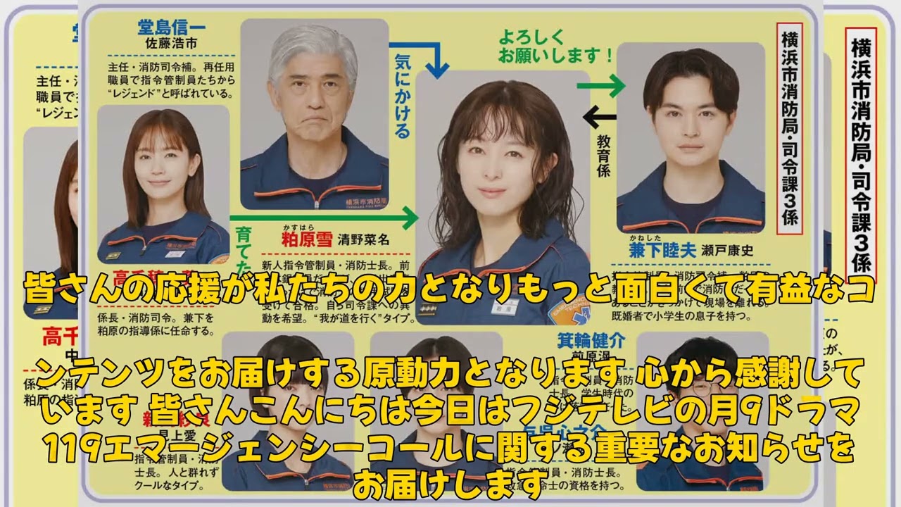 【説明】消防庁が、フジテレビの月9ドラマ『119エマージェンシーコール』とのタイアップポスターの配布を延期した理由とは?中居正広と女性とのトラブルが影響しているとの報道があり、フジテレビの社員の関与も指摘されています。消防庁は「広報としての適切なタイミングを考えた」と説明し、ポスターの配布を当面見送る方針です。ドラマは消防局の通信指令センターを舞台にしたオリジナルストーリーで、視聴者の関心を集めています。フジテレビ社長は謝罪し、調査委員会を設置する意向を示しています。この問題の詳細と今後の展開について解説します。ぜひご覧ください!