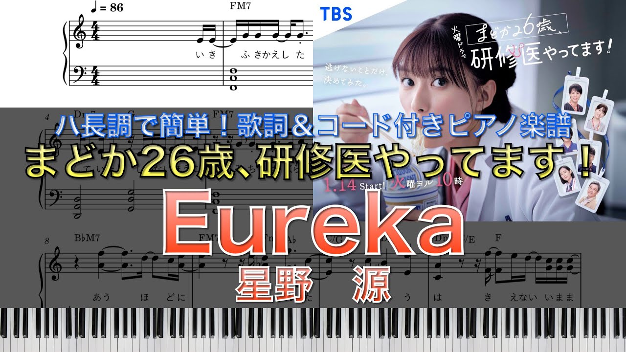 『まどか26歳、研修医やってます!』【TBS】|星野 源「Eureka」|ピアノ楽譜|ハ長調で初心者でも簡単(歌詞&コード付き)
