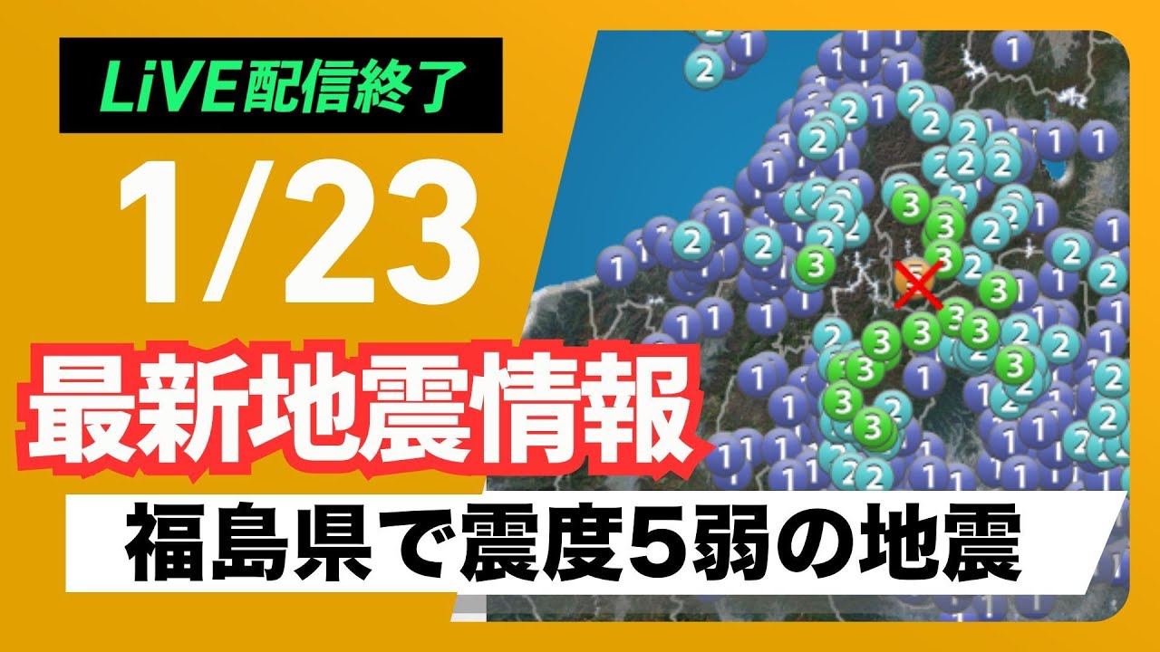 【ライブ】最新地震情報 福島県 檜枝岐村で震度5弱 津波の心配なし/2025年1月22日(水)17:00〜23日(木)5:00〈ウェザーニュースLiVE〉