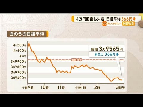 4万円回復も失速 日経平均株価366円↓【知っておきたい!】【グッド!モーニング】(2025年1月28日)