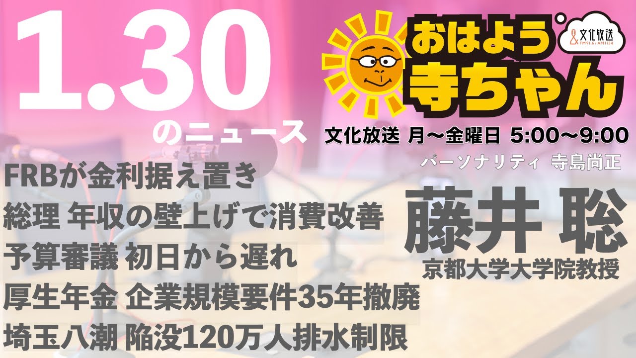 藤井聡(京都大学大学院教授)【公式】おはよう寺ちゃん 1月30日(木) 6時〜7時台