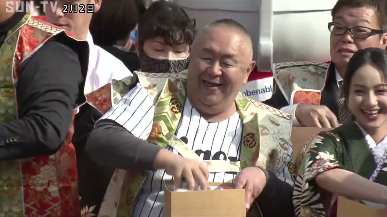 神戸市生まれの俳優平祐奈さんやタレントの松村邦洋さんらが「福は内」の掛け声に合わせて豆をまくと、参拝者は1年の福をつかみ取ろうと一斉に手を伸ばしていました。