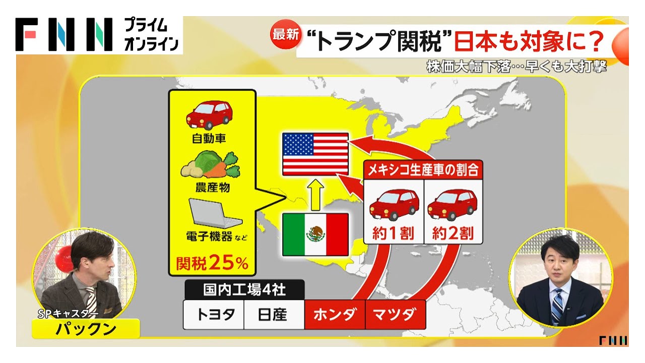 株価急落…“トランプ関税”は今後日本も対象に?賃上げの機運に悪影響の恐れも メキシコから米への輸出品関税引き上げで自動車産業など収益大幅減少