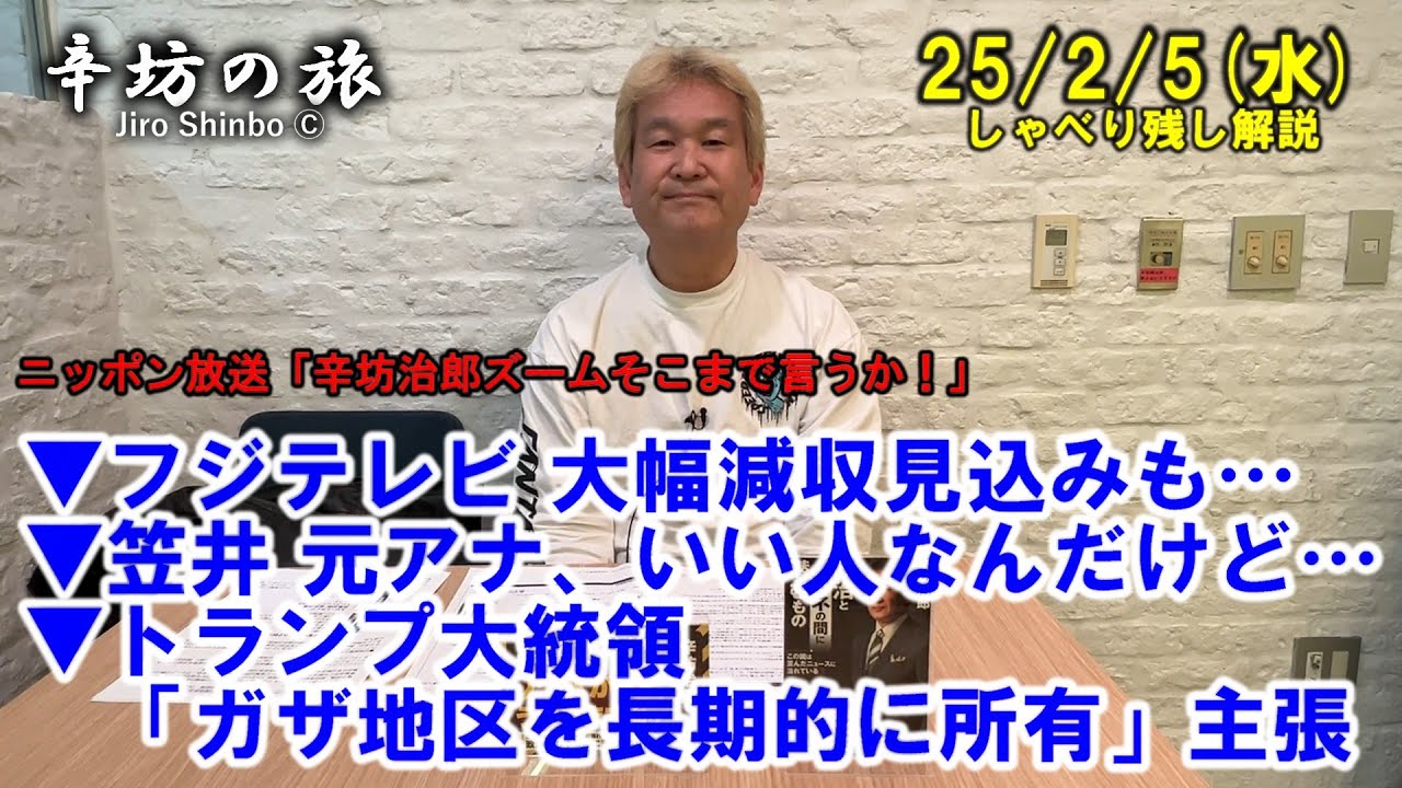 テレビの営業って…フジテレビ大幅減収見込みでも…▼笠井・元アナ、いい人なんだけど…▼トランプ大統領「ガザ地区を長期的に所有」主張 25/2/5(水)「辛坊治郎ズームそこまで言うか!」しゃべり残し