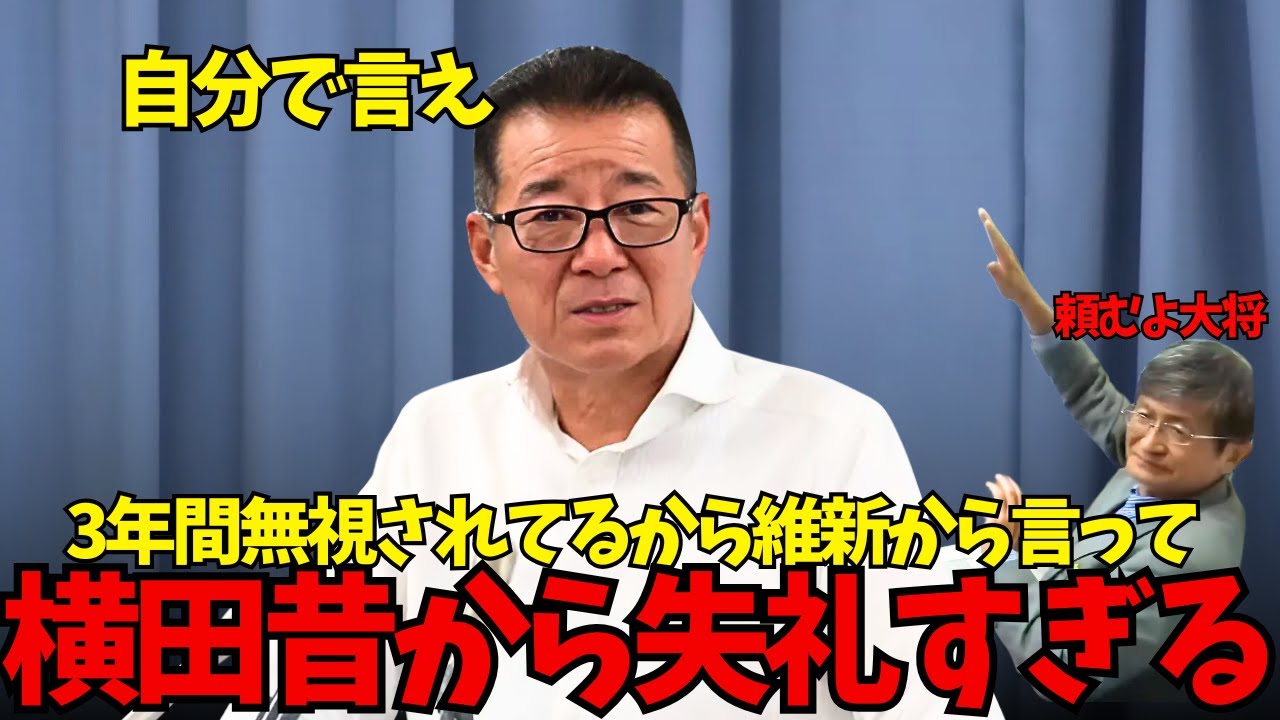 【横田記者無茶振り】松井代表「それは小池都知事に言え!」横田記者「3年間無視されてるから維新から言え!」