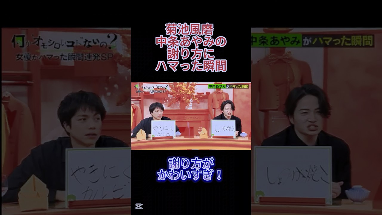 Share Facebook Twitter Pinterest LinkedIn 菊池風磨 中条あやみの謝り方にハマった瞬間 菊池風磨 中条あやみの謝り方にハマった瞬間 #shorts #菊池風磨 #中条あやみ #ボケ #女優 #ニラレバ celebrity中条あやみ