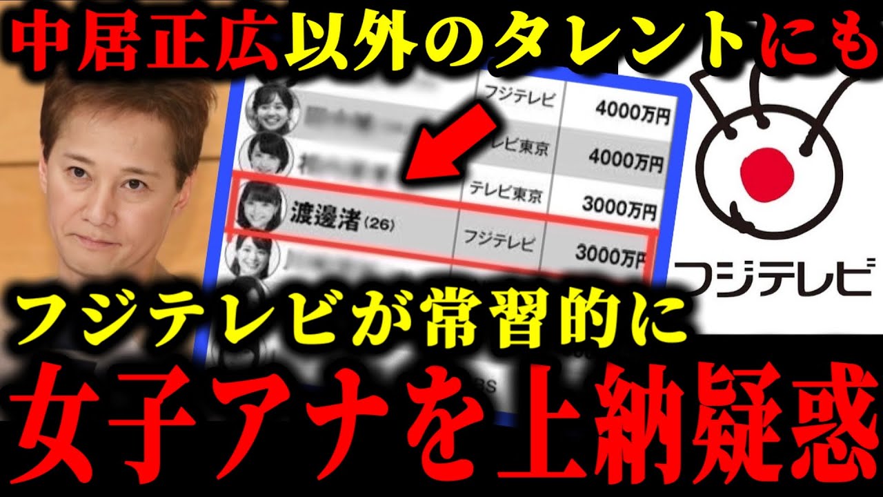 中居正広以外の芸能人にもフジテレビが常習的に●接待要員の女子アナを上納していた疑惑が浮上している件について。#中居正広#中居正広9000万#渡邊渚