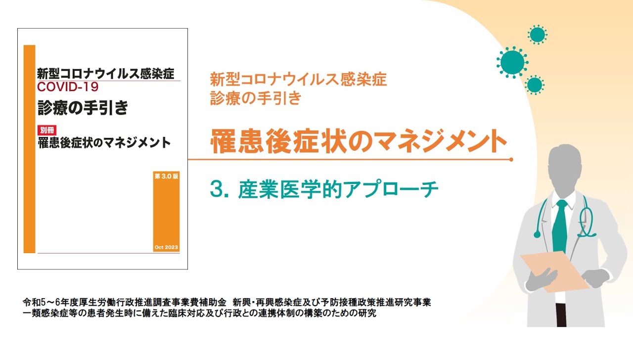 「新型コロナウイルス感染症 診療の手引き 別冊 罹患後症状のマネジメント」の第12章である罹患後症状と産業医学的アプローチの概要をまとめた動画を作成しました。
