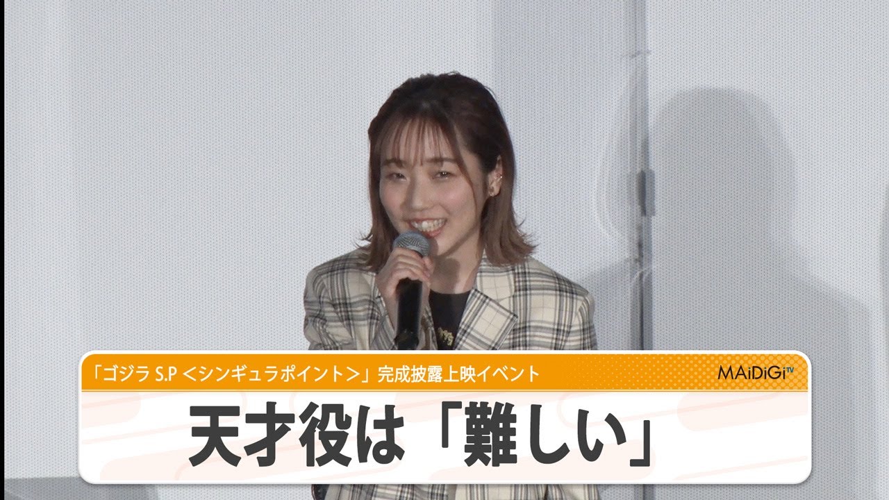 怪獣映画「ゴジラ」の完全新作のテレビアニメシリーズ「ゴジラ S.P <シンギュラポイント>」の完成披露上映イベントが3月19日、TOHOシネマズ 日比谷(東京都千代田区)で開催され、宮本侑芽さんら声優陣が登場した。主人公の一人の神野銘役の宮本さんは、役どころについて「天才なんですね。日常をのほほんと生きている女の子を演じることが多かったので、天才という役柄が難しかったです。思ったことをすぐに口を出す女の子で、せりふのスピードが速いんです」と語った。
