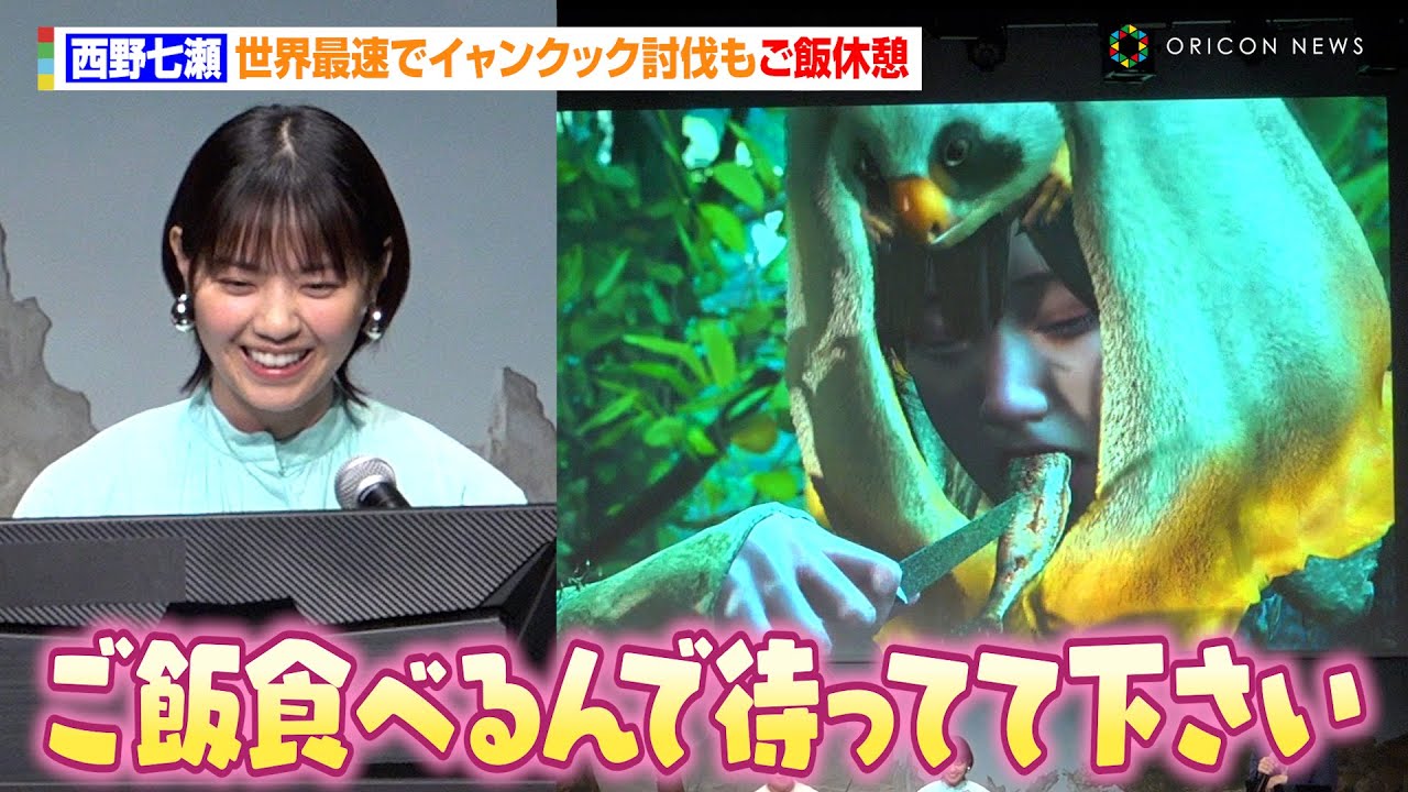 西野七瀬、世界最速で“イャンクック討伐”もマイペースにご飯休憩!?マルチプレイなのに孤軍奮闘する場面も「西野さん怒っていいですよ!」 ゲーム『モンスターハンターワイルズ』発売前夜イベント