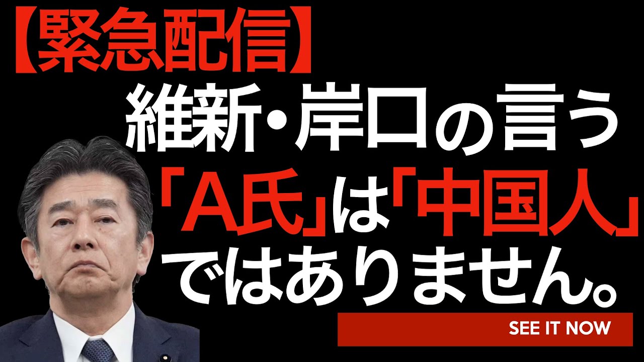 【緊急配信】維新・岸口のいう「A氏」は「中国人」ではありません。