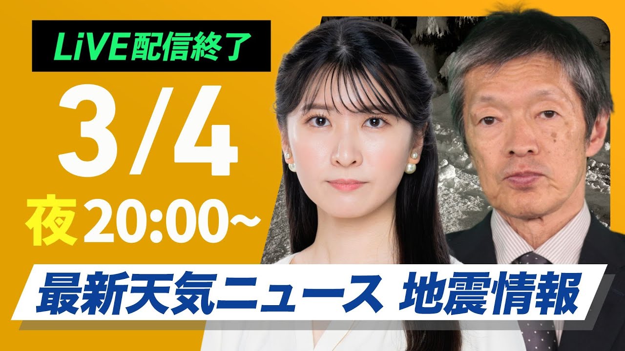 【ライブ配信終了】最新関東雪情報/最新天気ニュース・地震情報2025年3月4日(火)/〈ウェザーニュースLiVEムーン・駒木結衣/飯島栄一〉