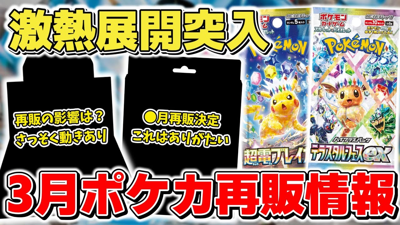 【ポケカ】3月ポケカ再販情報の詳細が判明 激熱展開すぎて事前に購入計画は必須 あとは買えるかが問題だが… テラスタルフェスex/バトルパートナーズ/超電ブレイカー【ポケモンカード】