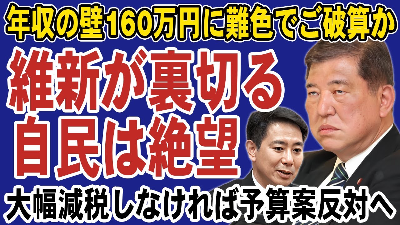 日本維新の会が自民党・公明党を裏切り予算不成立か!年収の壁を160万円に引き上げる与党案に難色を示す。国民民主案の178万円が実現するか…