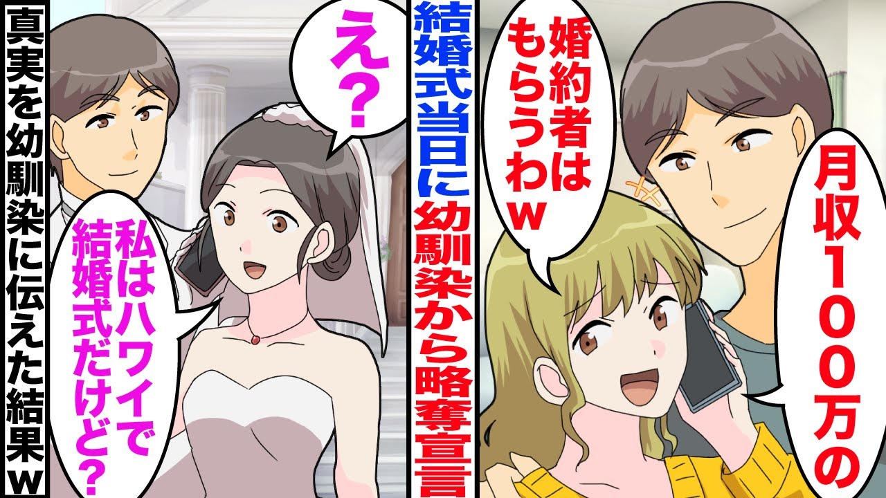 【漫画】結婚式当日に幼馴染から略奪宣言「月収100万の婚約者もーらい!」→私「え?私は海外で結婚式だけど?」ある事実を幼馴染に伝えた結果w【マンガ】【嫁子】