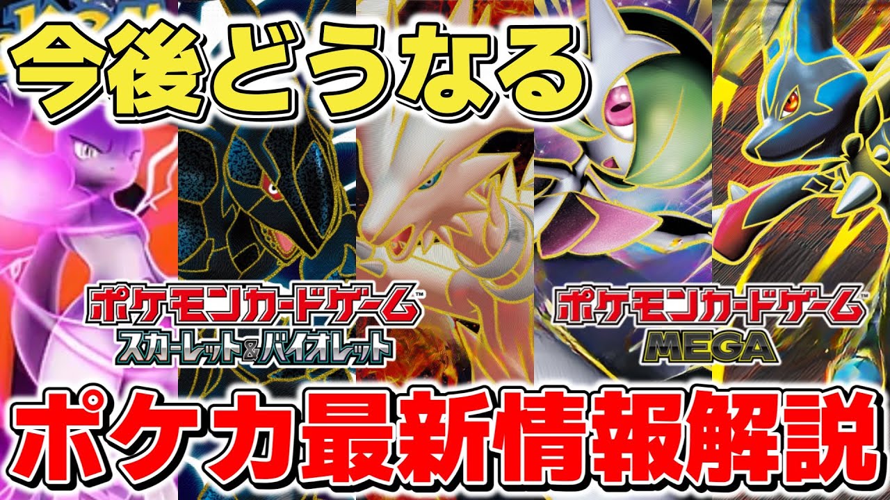 先日2025年内に「ポケモンカードゲームMEGA」シリーズが開始することが判明しましたが、今後の新弾はどうなっていくのでしょうか。また新シリーズ開始時期・トレーナーのポケモン・ハイクラスパックなど様々な謎要素が多く存在しているので、改めて現時点で判明している情報を整理してみたいと思います。