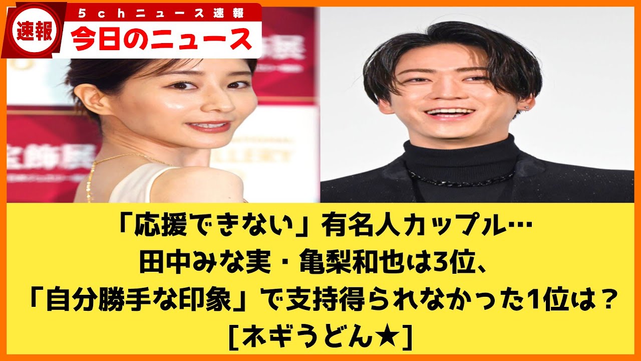 【2chニュース】「応援できない」有名人カップル…田中みな実・亀梨和也は3位、「自分勝手な印象」で支持得られなかった1位は? [ネギうどん★]【2chまとめ】