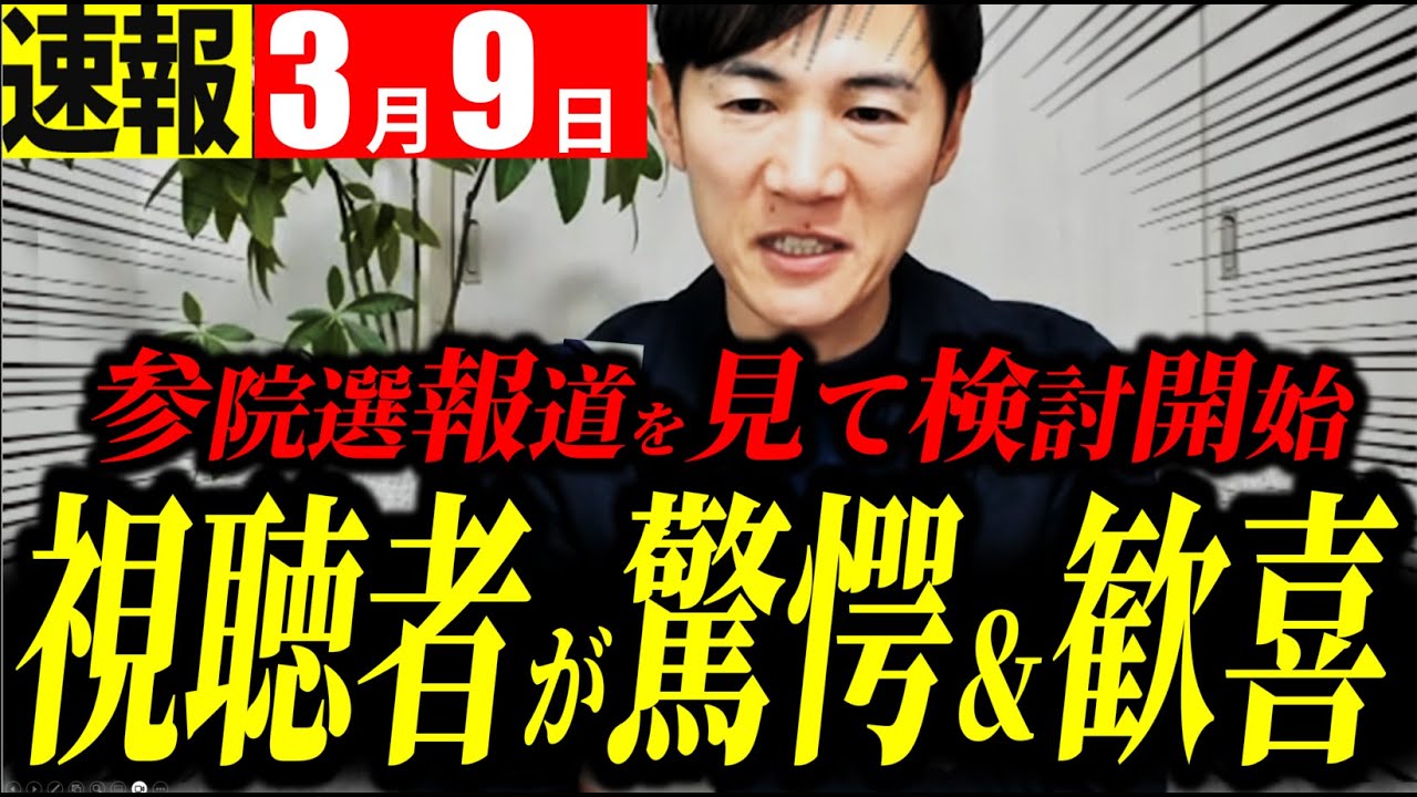 【超速報3/9】石丸伸二「参院選の報道を見るにつけ…」視聴者が興奮・驚愕【石丸伸二 切り抜き】