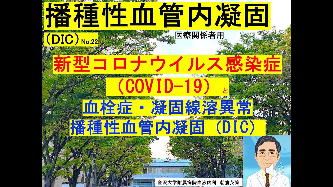 Share Facebook Twitter Pinterest LinkedIn 【DIC22】新型コロナウイルス感染症(COVID-19)と血栓症・凝固線溶異常、播種性血管内凝固(DIC) 新型コロナウイルス感染症(COVID-19)は、ワクチンが普及したこともあり、重症化する方が少なくなりましたが、今も重症化した場合は、血栓症、DICを発症します。病態や治療戦略を熟知しておきたいと思います。 #新型コロナウイルス感染症 #COVID-19 #播種性血管内凝固 #DIC #凝固線溶異常 #静脈血栓塞栓症 #ワクチン #VITT NEWS新型コロナウイルス感染症