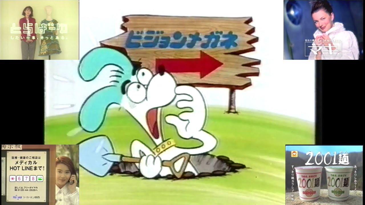 関西地方の視聴者には、これまた定番CMの「Good-eye Communication~♪ ビジョンメガネ~♪」のキャッチフレーズでおなじみだった、何故か犬が穴を掘っていた(笑)ビジョンメガネのCMなどです!