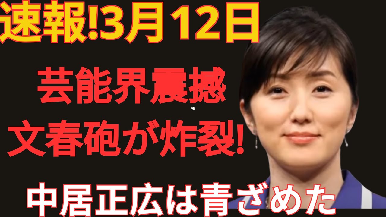 速報!3月12日…芸能界に激震…文春砲が炸裂!中居正広は青ざめた!