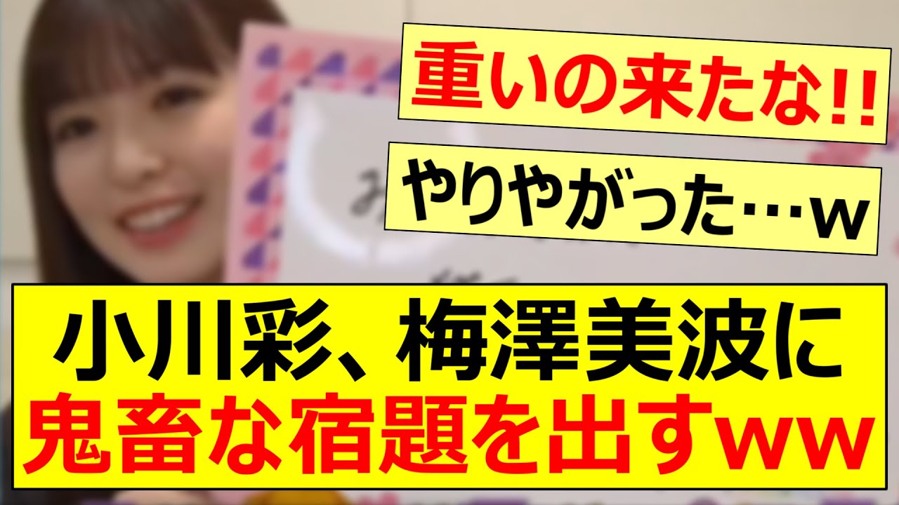 Share Facebook Twitter Pinterest LinkedIn 小川彩、梅澤美波に鬼畜な宿題を出すwww【乃木坂46・のぎおび・乃木坂配信中・乃木坂工事中】 #乃木坂46 #小川彩 #梅澤美波 梅澤美波 Instagram:https://www.instagram.com/ume_minami.official/ VOICEVOX:四国めたん・春日部つむぎ・玄野武宏 https://voicevox.hiroshiba.jp/ BGM:追いかけっこキャッハー https://dova-s.jp/bgm/play6388.html celebrityネットの反応乃木坂乃木坂46乃木坂工事中乃木坂配信中反応集梅澤美波