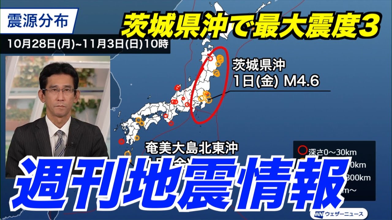 【週刊地震情報】茨城県沖で最大震度3 前週の震源よりも南の領域(2024.11.3)