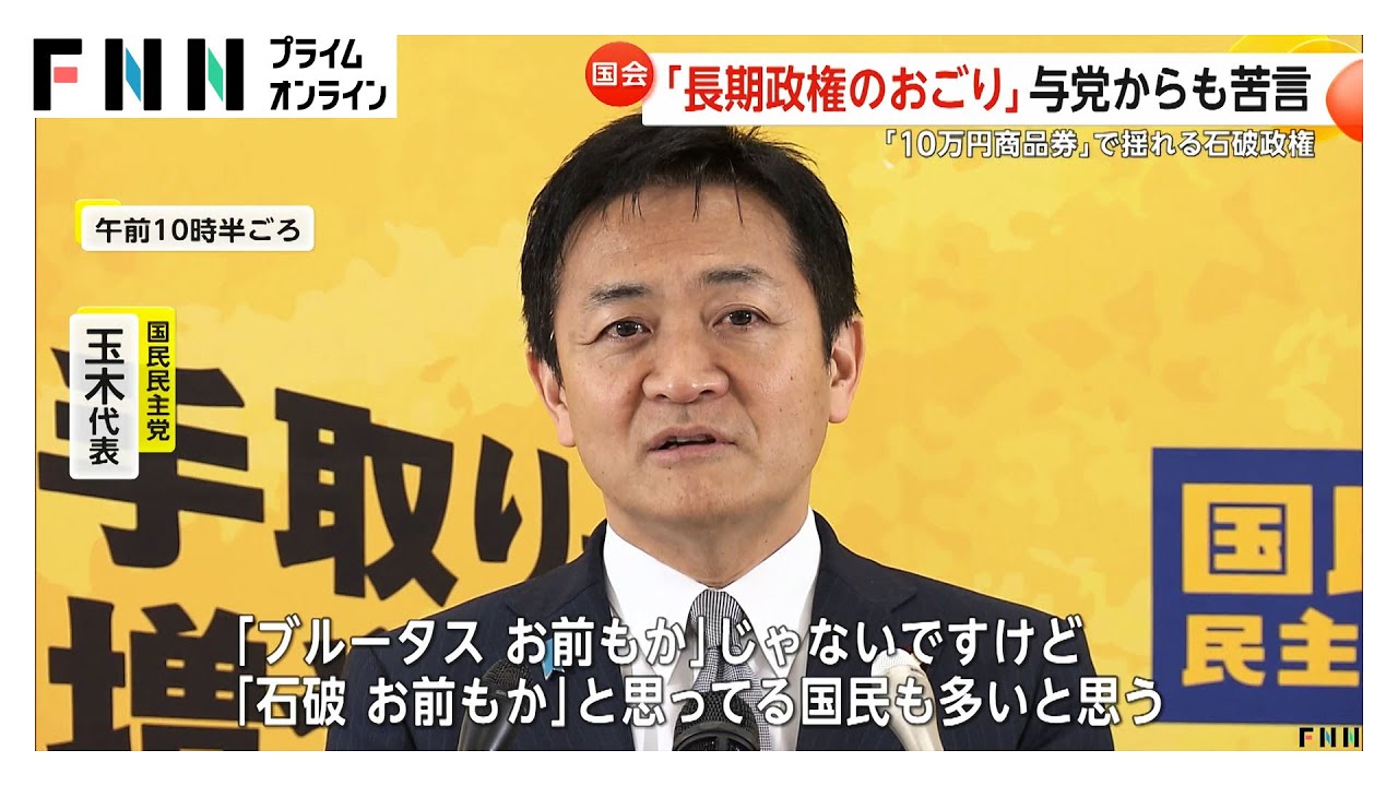 「10万円商品券」で揺れる石破政権「長期政権のおごり」与党からも苦言 国民・玉木代表「政倫審で弁明・説明を」