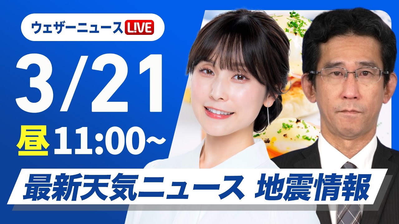 【ライブ】最新天気ニュース・地震情報 2025年3月21日(金)/西日本や東日本は春本番の暖かさ〈ウェザーニュースLiVEコーヒータイム・松雪彩花/山口剛央〉