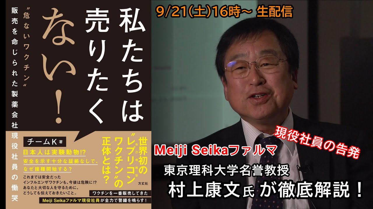 大手製薬会社「Meiji Seikaファルマ」の現役社員が「私たちは売りたくない!」と題し、レプリコンワクチンについて書いた告発本が今月18日、方丈社より出版されました。発売日当日に初版は完売、その日のうちの重版が決まるなど世の中の関心の高さがうかがえますが、その中身は一体何が書かれているのか?事情に詳しい、東京理科大学名誉教授の村上康文先生に解説して頂きます。