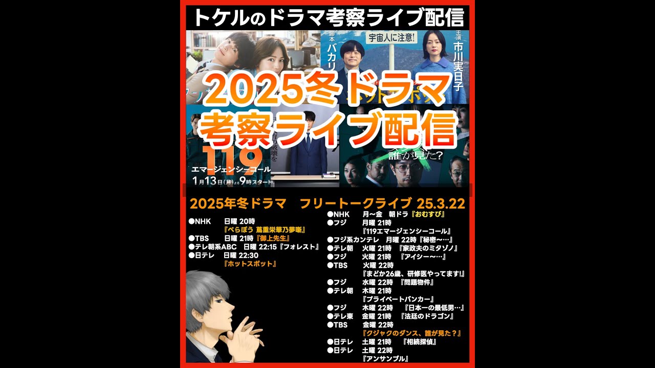 #2025冬ドラマ フリートークライブ配信! ドラマ考察感想 新ドラマ1月期まとめ #御上先生 #ホットスポット #クジャクのダンス誰が見た #べらぼう #119エマージェンシーコール #アンサンブル