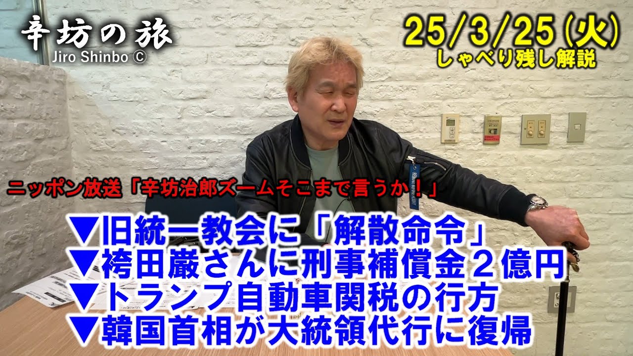 旧統一教会に「解散命令」▼袴田巌さんに刑事補償金▼トランプ自動車関税▼韓国首相が大統領代行に復帰 25/3/25(火)「辛坊治郎ズームそこまで言うか!」しゃべり残し